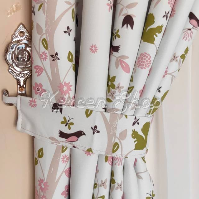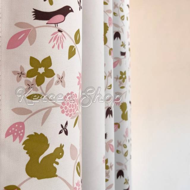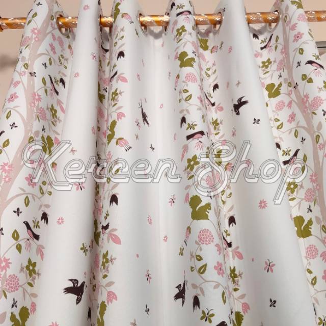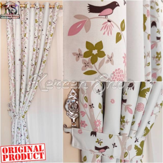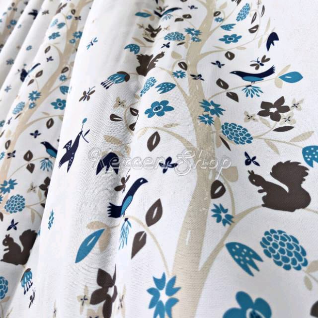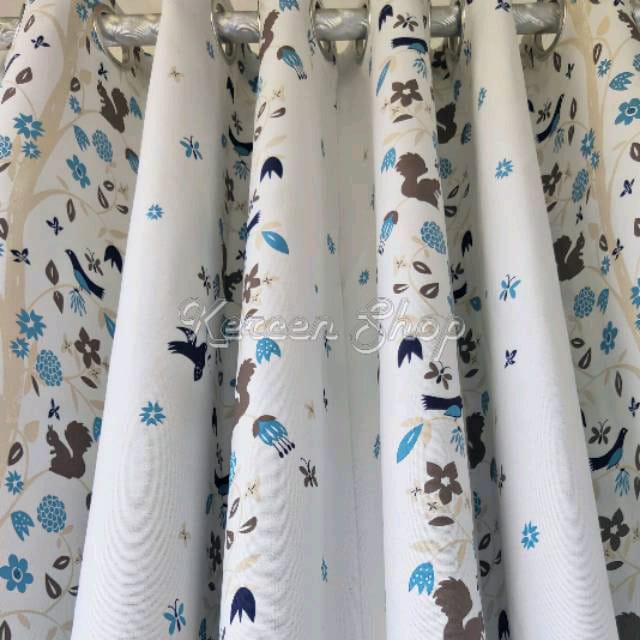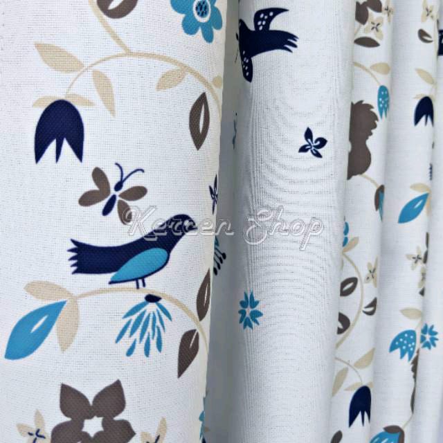 Tirai Gorden Jendela Minimalis Motif Burung Biru Bahan Bridal Ukuran BISA CUSTOME SIZE