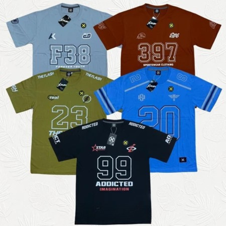 PAKET 4 PCS KAOS DISTRO MOTIF ANGKA UNISEX BAJU ATASAN PROIA WANITA BAHAN SEMI KATUN ADEM TIDAK TERAWANG TERMURAH