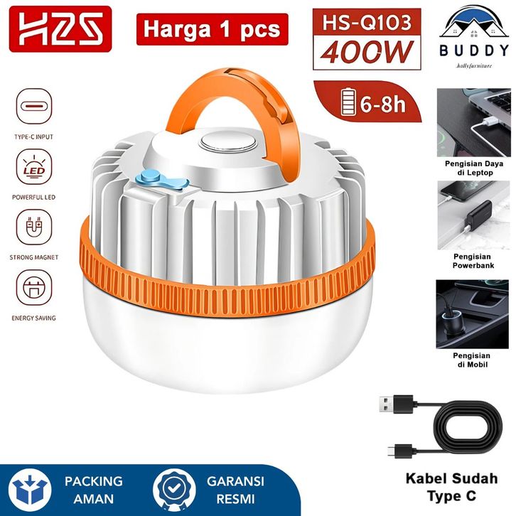 (PROMO) H2S LAMPU EMERGENCY LED SURYA TAHAN LAMA BESAR CHARGER LENTERA BOHLAM BATERAI PHILIPS HANNOCH LUBY AOKI PORTABLE