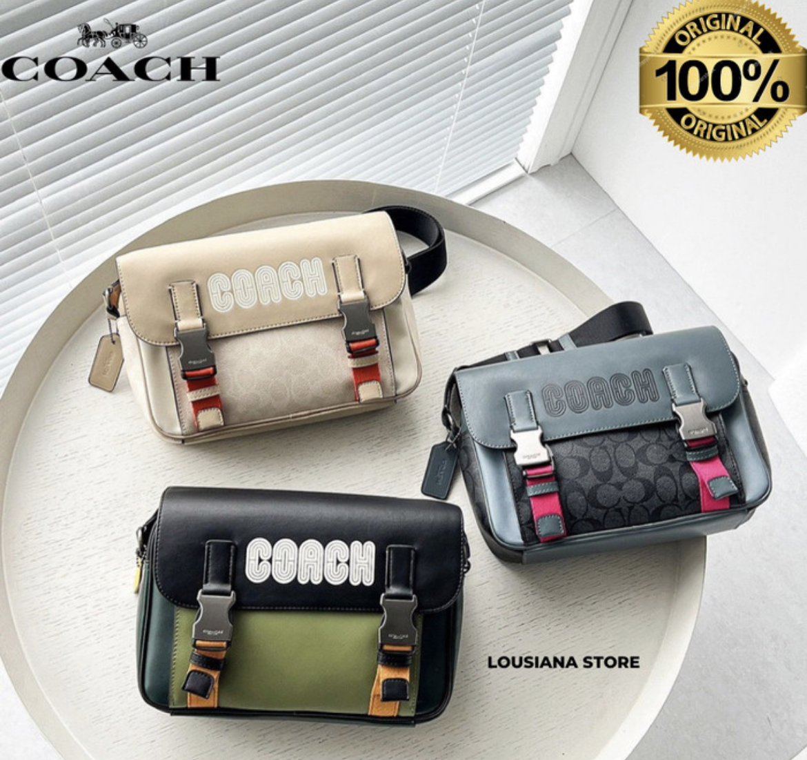 Tas Pria Original Coach Track Crossbody In ColorblockSignature Canvas With Coach