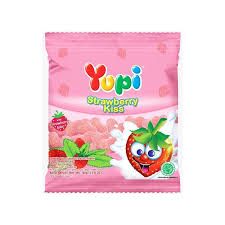 YUPI STRAWBERRRY KISS KEMBANG GULA LUNAK JELI RASA STOBERI 120G