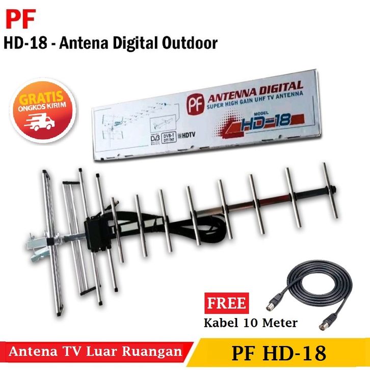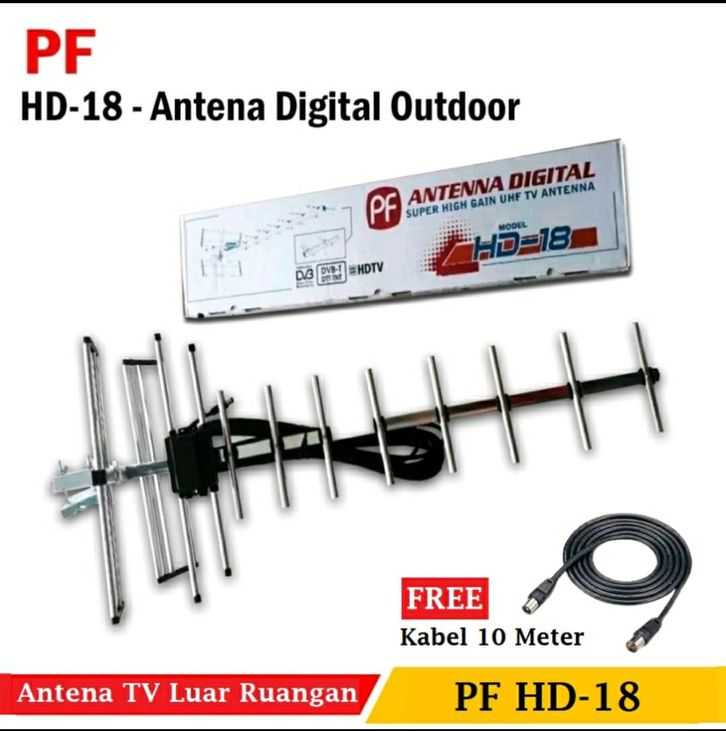 (BEBAS ONGKIR) TERBARU Antena TV PF HD-18 Antena Luar Ruangan Free Kabel 10 Meter Super High Gain UHF TV ori TERMURAH