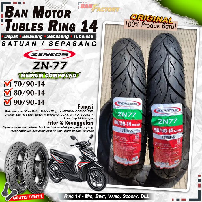 Ban Motor Matic Tubles Ban Motor Depan Belakang Beat Vario Scoopy Zeneos Zn89 Ring 14 Tubles Tubeless