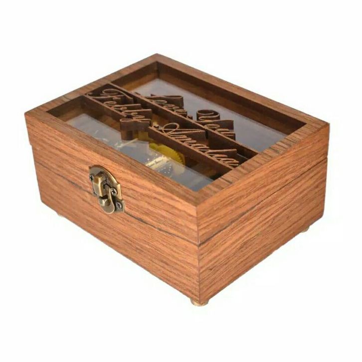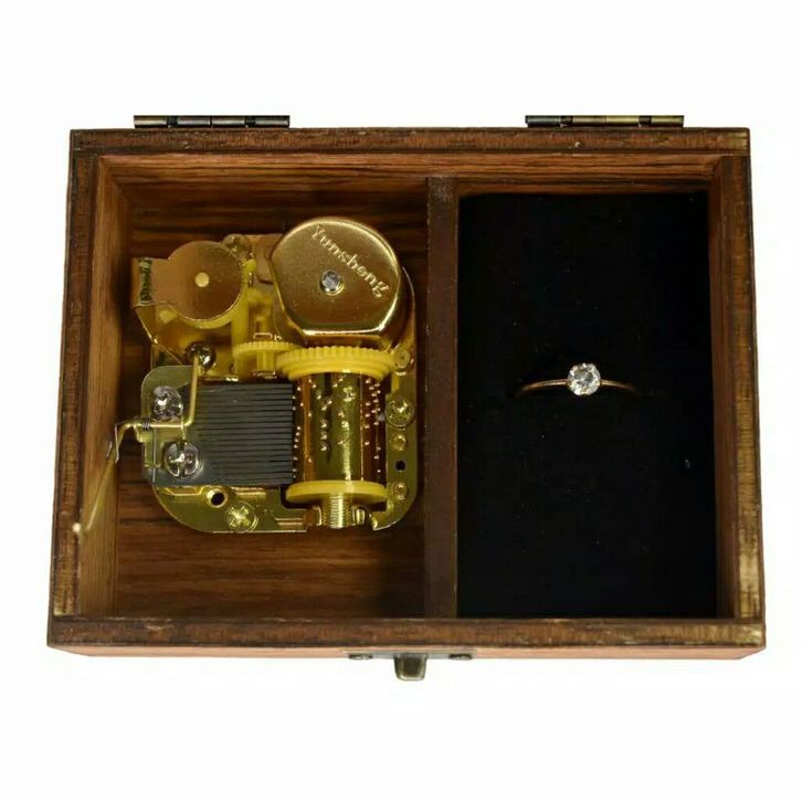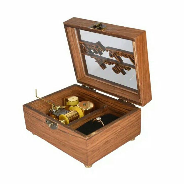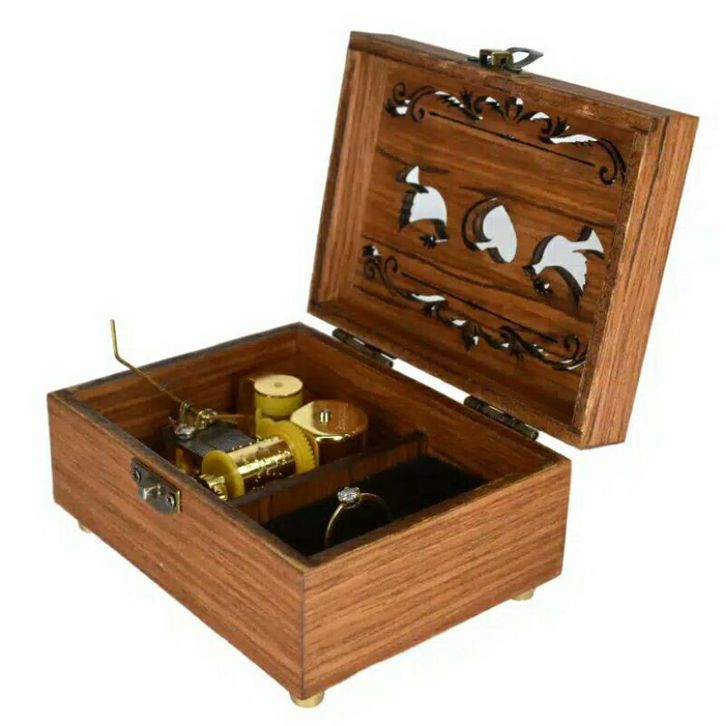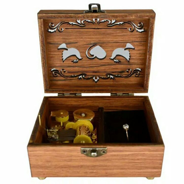 Kotak Musik Kayu Besar Otomatis Dengan Tempat Cincin - Hadiah Unik/Kado Ulang Tahun/Pernikahan/Mahar