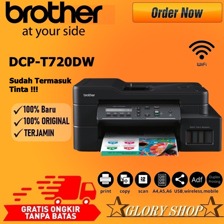New Printer BROTHER DCP-T720DW Printer Ink Tank Multifunction T720 WiFi Duplex ADF Print, Scan, Copy
