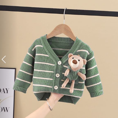 ZAHRA Cardigan Bahan Rajut Acrilic Anak TEDDY STRIP PREMIUM | Cardy Rajut Anak Umur 1 - 5 Tahun