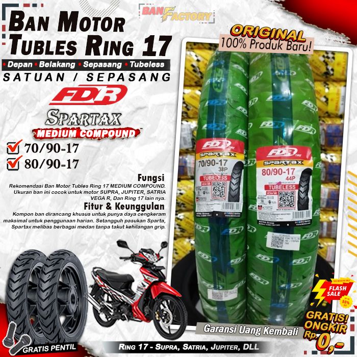 Ban Motor Tubles Ring 17 Ban Tubles Motor Depan Belakang Vixion Supra Satria FDR Spartax Ring 17