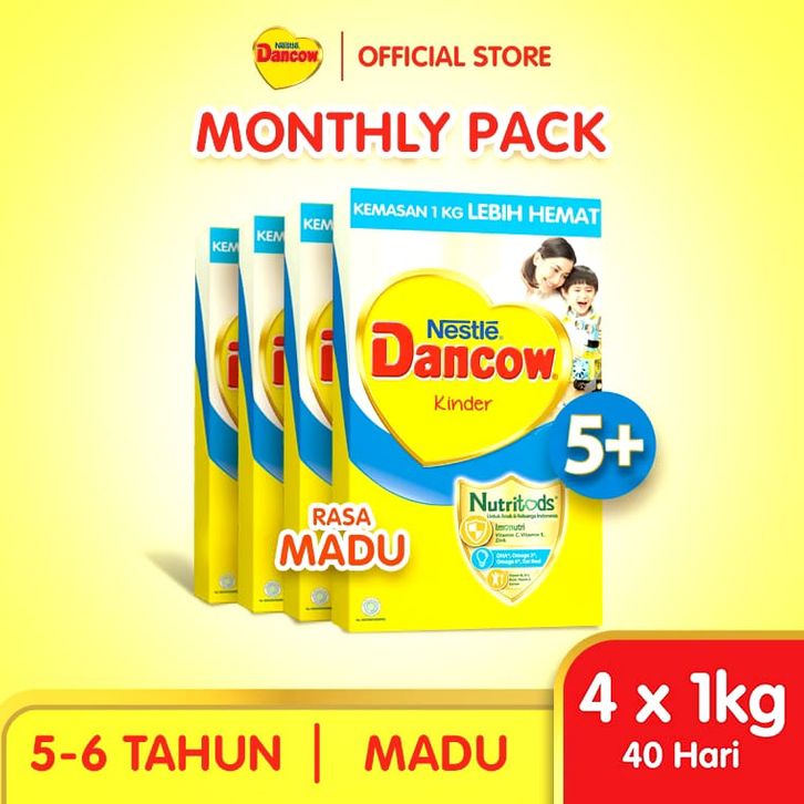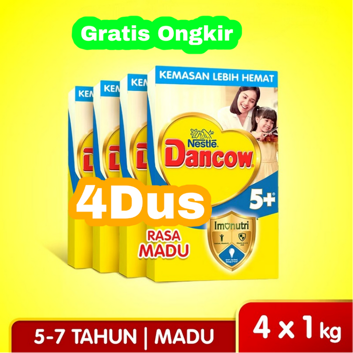Nestle Dancow 5+ Madu Susu Pertumbuhan 5-6 Tahun Rasa Madu 1Kg X4