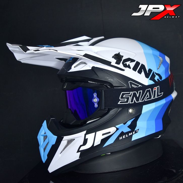 HELM FULL FACE JPX CROSS FOX1 X37 WHITE DOFF ORIGINAL PAKET GANTENG GOOGLE SNAIL HELMET MOTO TRAIL SUPERMOTO