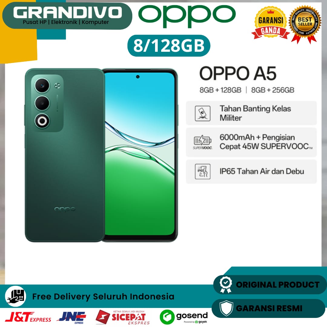 HP Opp o A5 2025 [8GB+128GB] Mediatek Dimensity 6300 Baterai 6000mAh Ex Demo - Grandivo