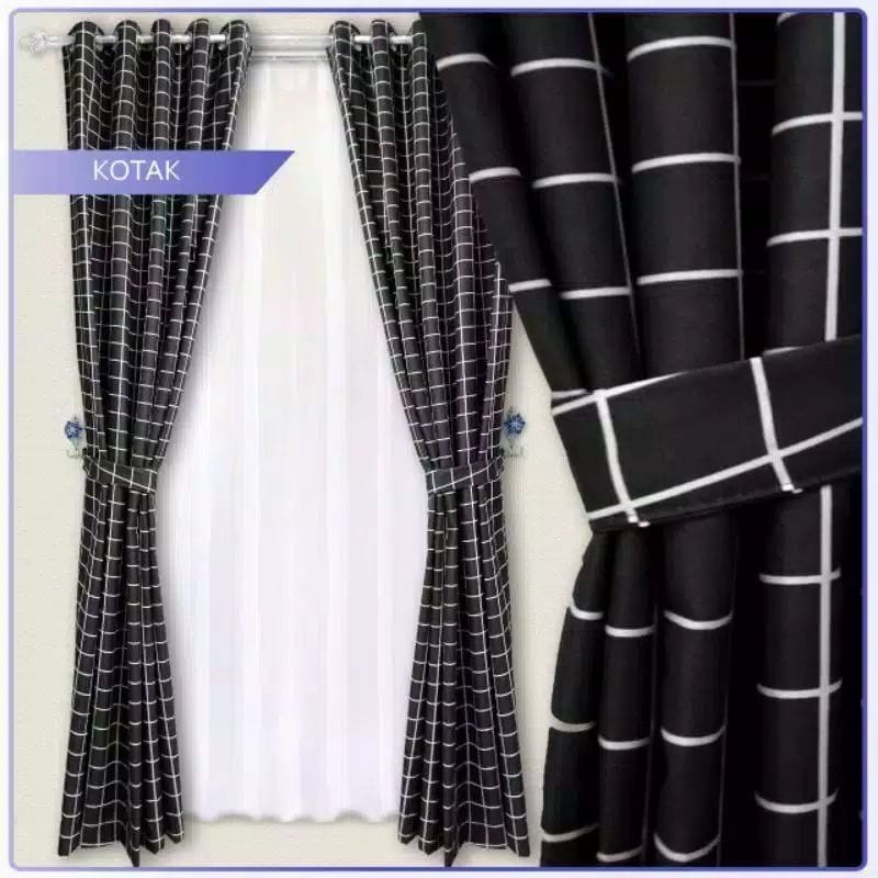 PROMO Tirai Gorden Jendela dan Pintu MINIMALIS Motif kotak Bahan katun