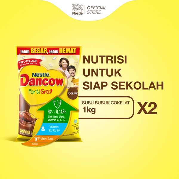 DANCOW Fortigro Susu Bubuk Susu Anak Coklat Pouch 1kg x 2 pcs
