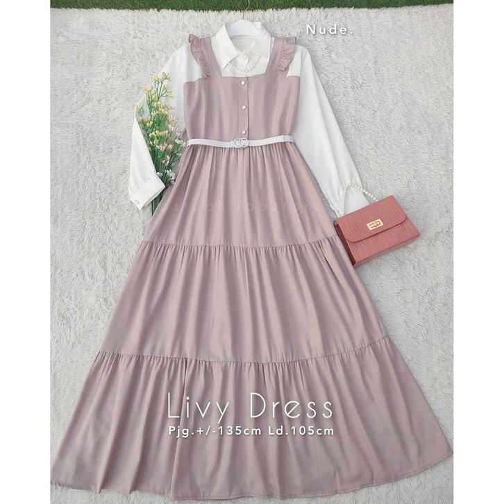 Baju Gamis Wanita Terbaru Livy Dress Gamis Remaja Kekinian Korean Style Busui FREE BELT FRZ
