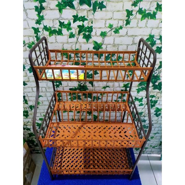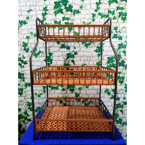 PROMO DISKON RAK PIRING PLASTIK SUSUN 3 CAMELIA COKLAT RAK SERBAGUNA / RAK BUMBU / RAK DAPUR SERBAGUNA