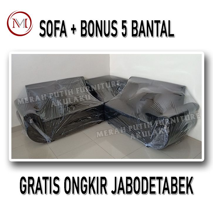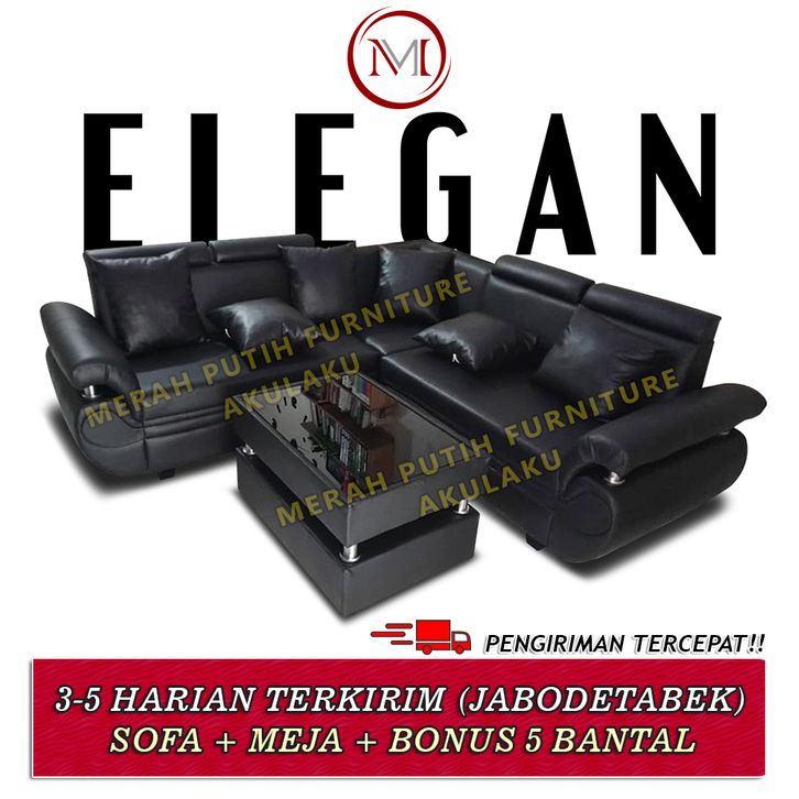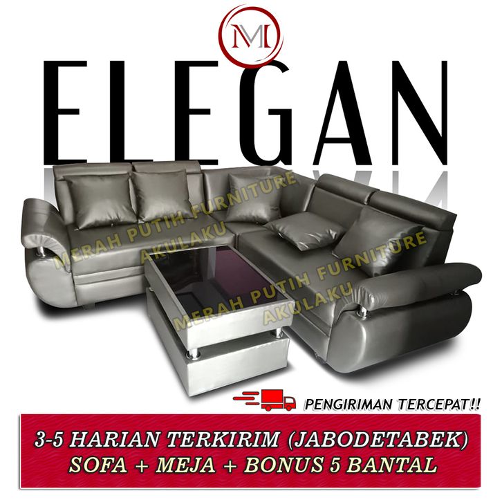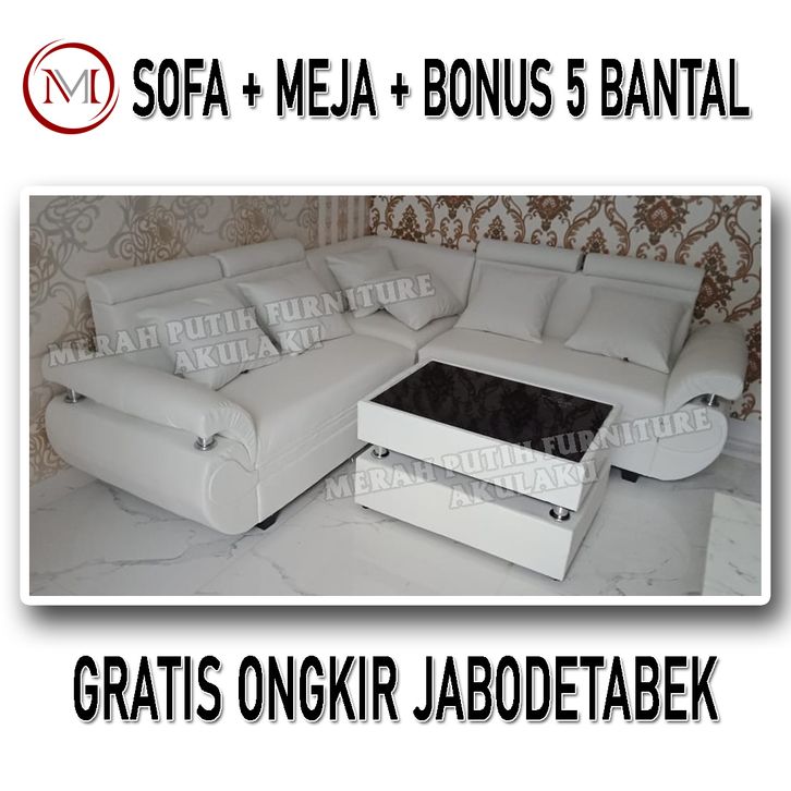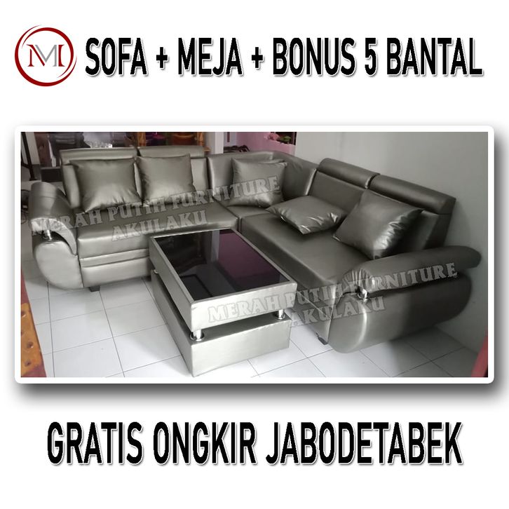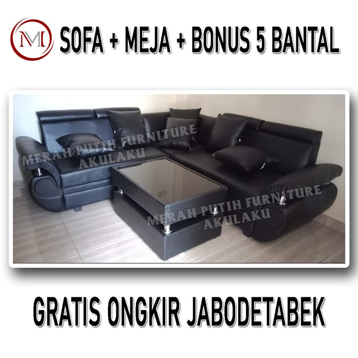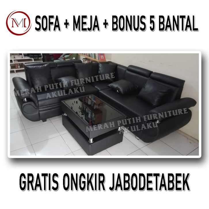 Sofa L Sudut Glamour Plus Meja | Kain Oscar/Kulit Anti Air | Mewah - Minimalis - Murah