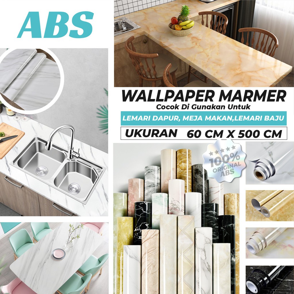 (ABS) WALLPAPER WALLSTIKER DAPUR MOTIF GRANIT MARBLE PREMIUM 60CM X 500CM LEMARI DAPUR MEJA