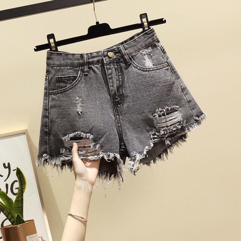 Celana Jeans Pendek Wanita Hot Pants Jeans korea style high waist Ripped sobek hotpants denim dewasa Robek xl XXl Biru h