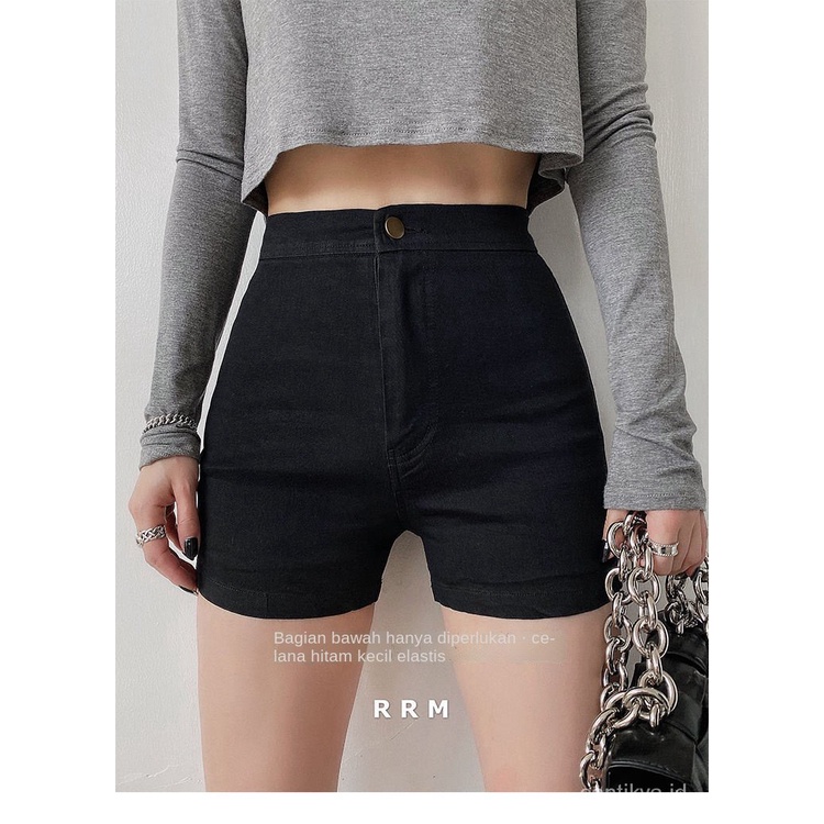 Hotpants jeans Stretch Skinny Celana Pendek korea style cewek denim Hitam Pinggang highwaist Tinggi Super Short dewasa x