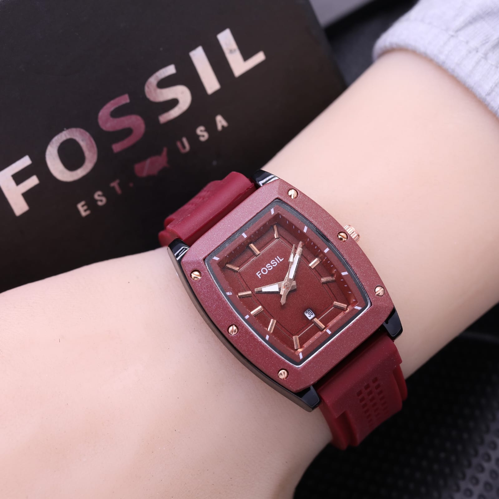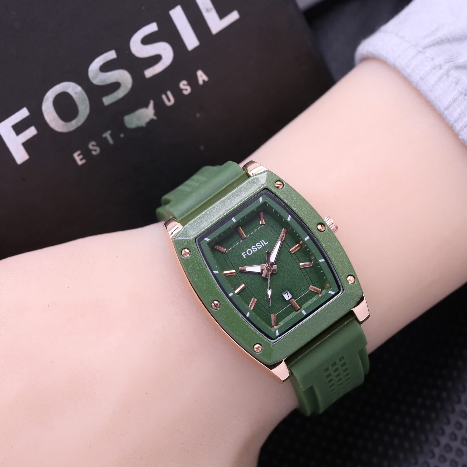 Jam Tangan Fashion Wanita Fossil F3754TL Tanggal Aktif Tali Rubber Free Box Original & Baterai
