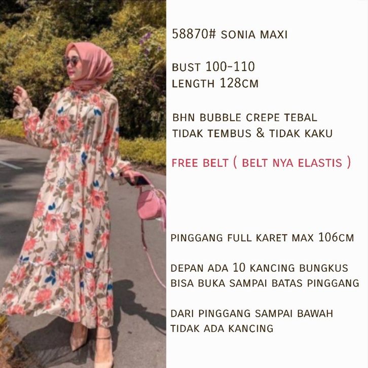 Maxi dress SONIA + BELT import TM 58870 Dress Wanita Terbaru