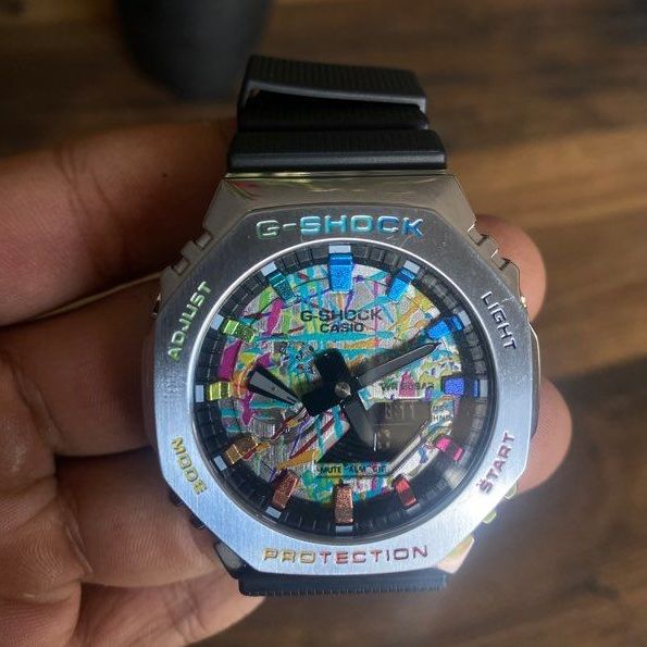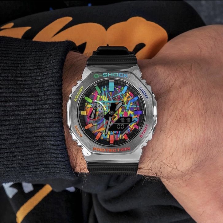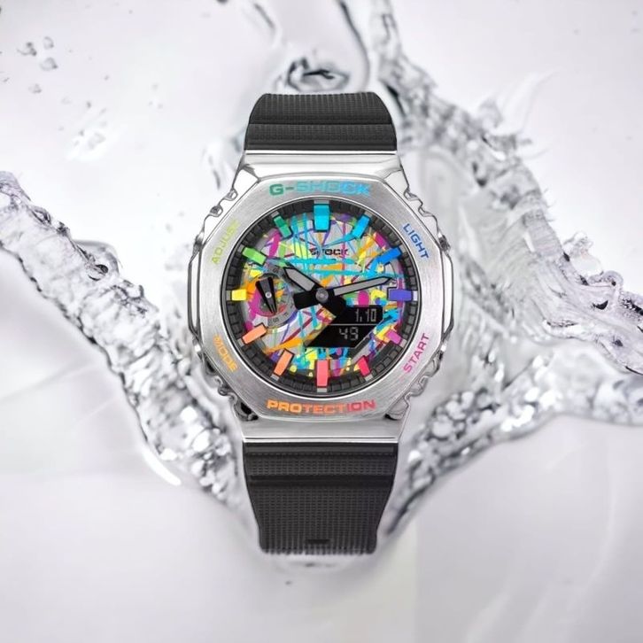 JAM TANGAN WANITA CASIO G-SHOCK GM-2100 SILVER BLACK DIAL RAINBOW - FREE ONGKIR - GARANSI 1 TAHUN