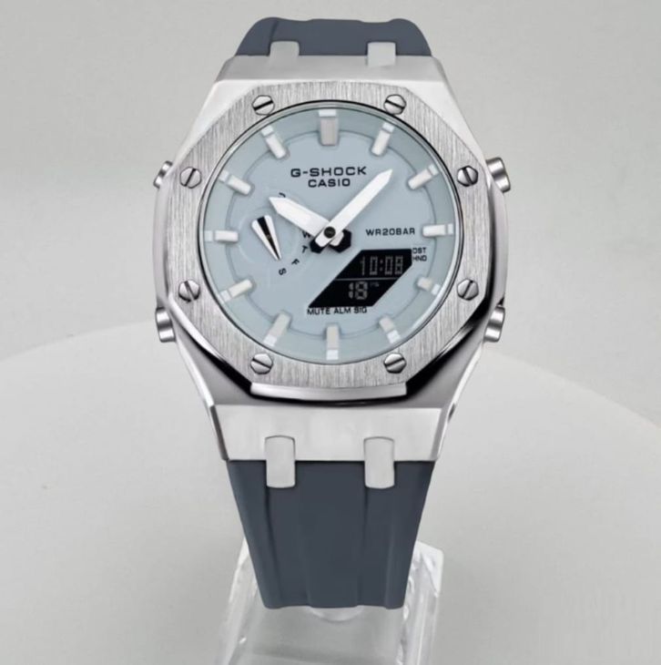 JAM TANGAN WANITA CASIO G-SHOCK GM-2100 SILVER GREY RUBBER- FREE ONGKIR - GARANSI 1 TAHUN