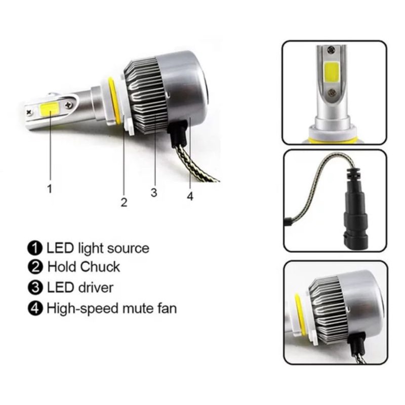 Bohlam Lampu LED Mobil Lampu Depan H4 C6 COB Grade A Super White ORIGINAL