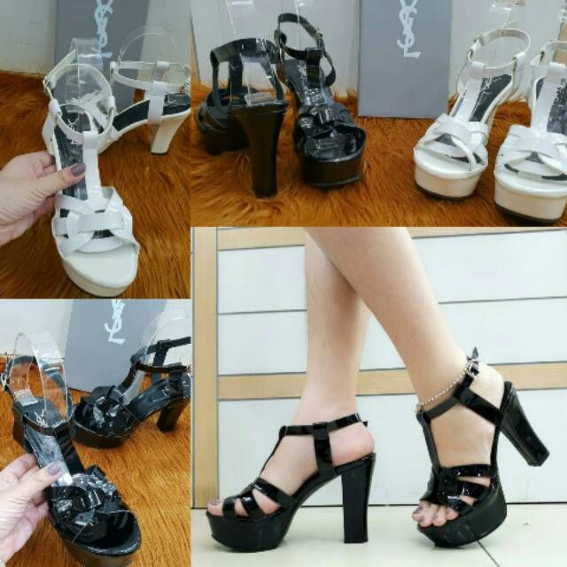GRATIS ONGKIR SEPATU HAK WANITA CHUNKY YSL HEELS 10 CM GLOSSY P1001