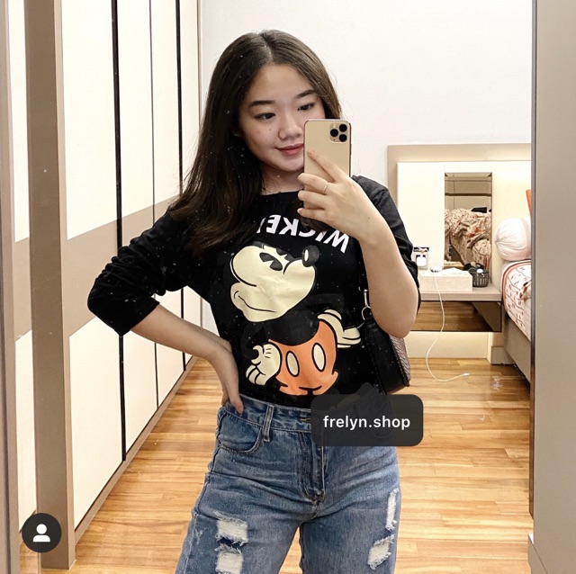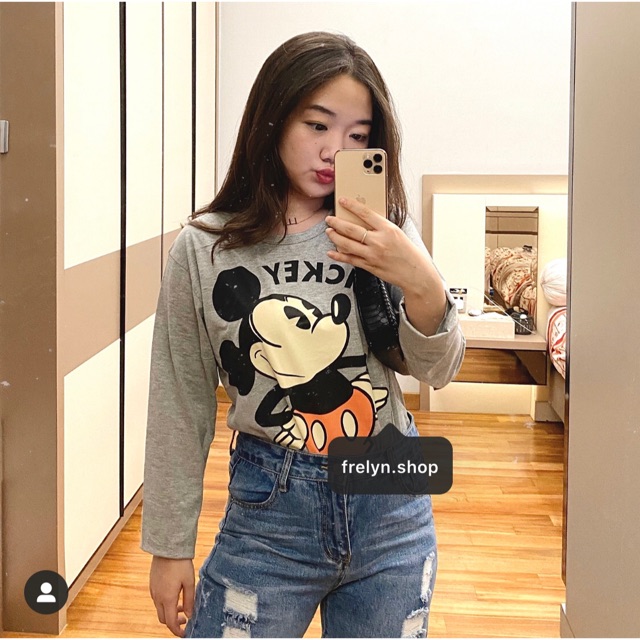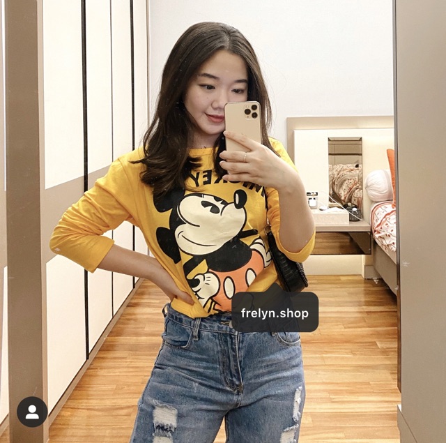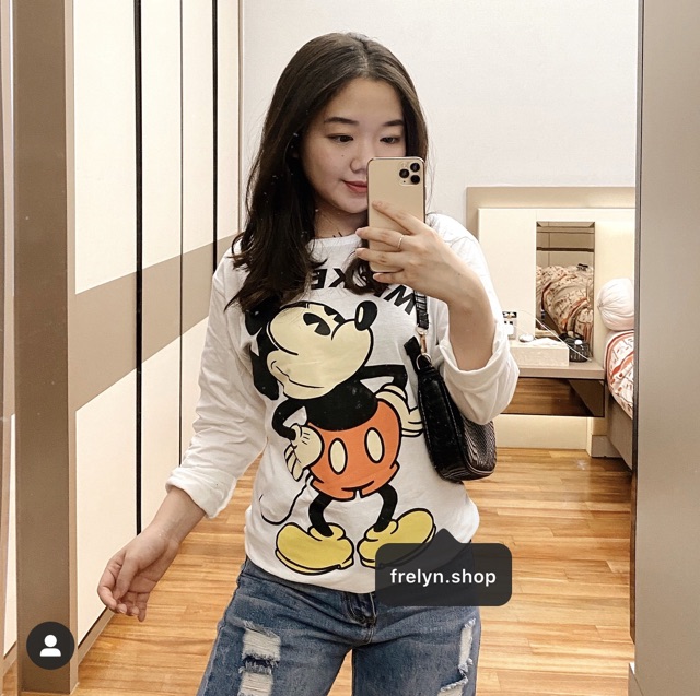 MICKEY LONGSLEEVE PANJANG OVERSIZE HITAM PUTIH KUNING ABU DISNEY | BAJU KAOS TSHIRT TUMBLR TEE