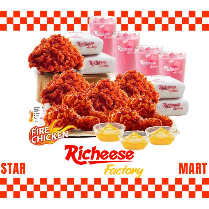 DS 2 RICHICKEN FIRE CHICKEN FIRE FLYING, Fire Diavola Chicken, Combo Truffle Fire Burger (BEEF), Nugget Non Spicy 6 pcs, Combo Togetherness FC, Combo Togetherness RB, COMBO FIRE FLYING CHICKEN, Combo 1 Fire Flaying Chicken Personal, Combo 2 Fire Flaying Chicken Personal, Richicken 5pcs, Fire Chicken 8pcs, Fire Wings 3pcs, Fire Wings 6pcs, Big Eight Fire chicken, FIRE CHICKEN, COMBO FIRE CHICKEN (+3 NASI DAN 3 MINUMAN), Flying Chicken 5pcs, AMO SPARK, COMBO FIRE CHICKEN, SAOS, Flying Chicken Whole, Combo Chicken FB-2, Combo Hampers 1, Combo Hampers 2, Combo Fire Chicken + Cheesy Cream Soup, Combo Ber-4 Whole Flying Chicken, Combo Fire Chicken + Perkedel, Drum Stick Fire Chicken 2pcs, Fire Chicken 3pcs, Fire Chicken 5pcs, Combo 4 Fire Wings, Combo 1 Fire Chicken, Combo Fire Drum Stick, Pahe Fire Chicken, Fire Chicken 1pcs, Combo Cheese Crackling, Combo AMO - Fire Drum Stick, Combo AMO - 1 Fire Chicken, Combo AMO - 4 Fire Wings, Combo Cheese Crackling AMO, Combo AMO Duo Fire Chicken, Drum Stick Flying Chicken 2 Pcs, Flying Chicken 1 Pcs, Flying Chicken 3 Pcs, Flying Chicken 5 Pcs, Flying Chicken 8 Pcs, Pahe Flying Chicken, Combo 2 Flying Chicken Personal, Drum Stick Richicken 2 Pcs, Richicken 1 Pcs, Richicken 2 Pcs, Richicken 3 Pcs, Richicken 5 Pcs, Richicken 8 Pcs, Pahe Richicken, Combo 2 Richicken, Big 8 Flying Chicken / Richicken, Big 5 Fire Chicken , Big 5 Flying Chicken / Richicken, Big 4 Flying Chicken / Richicken , Combo Flying Chicken Whole , Cheese Crackling , French Fries , Fire Wedges , Chicken Bites Spicy , Chicken Bites Non Spicy , Pink Lava Large , Pink Lava Medium , Mineral Water 330ml , Pink Lava 1L , Iced Coffee Milk , Iced Chocolate , Iced Mocha , Iced Vanilla Latte , Peach Osmanthus Medium , Peach Osmanthus Large , Peach Osmanthus 1L , Amo Cola Chicken , Combo Amo Cola Chicken , Amo Cola Fried Fries , Amo Cola Nugget 6 Pcs , Combo Flying Chicken Whole Banzai, Combo Fire Chicken Whole, Cheesy Waffle Fries, Fire Diavola Friend Fries, Fire Diavola Chicken Bites, Snack Box