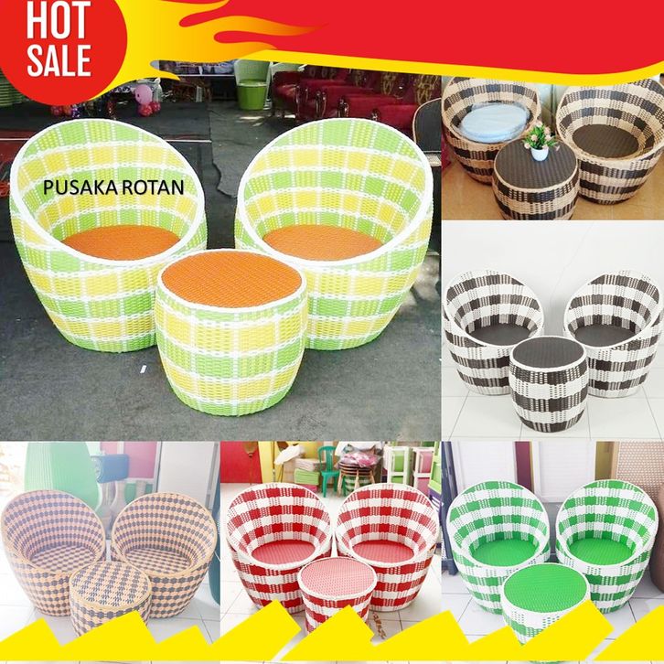 Kursi Teras Rotan Sintetis Gentong Bulat Cantik Elegan Murah Untuk Depan Rumah