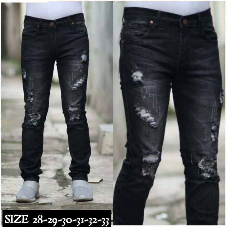 celana jeans cowok panjang ripped lutut puring tidak tembus size 28-33