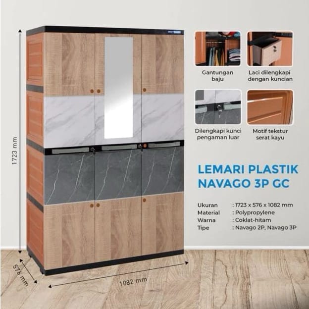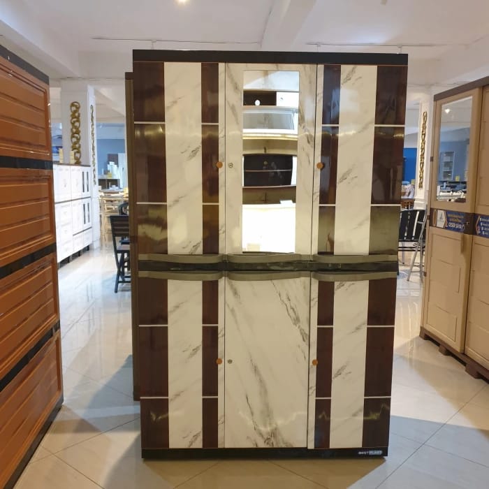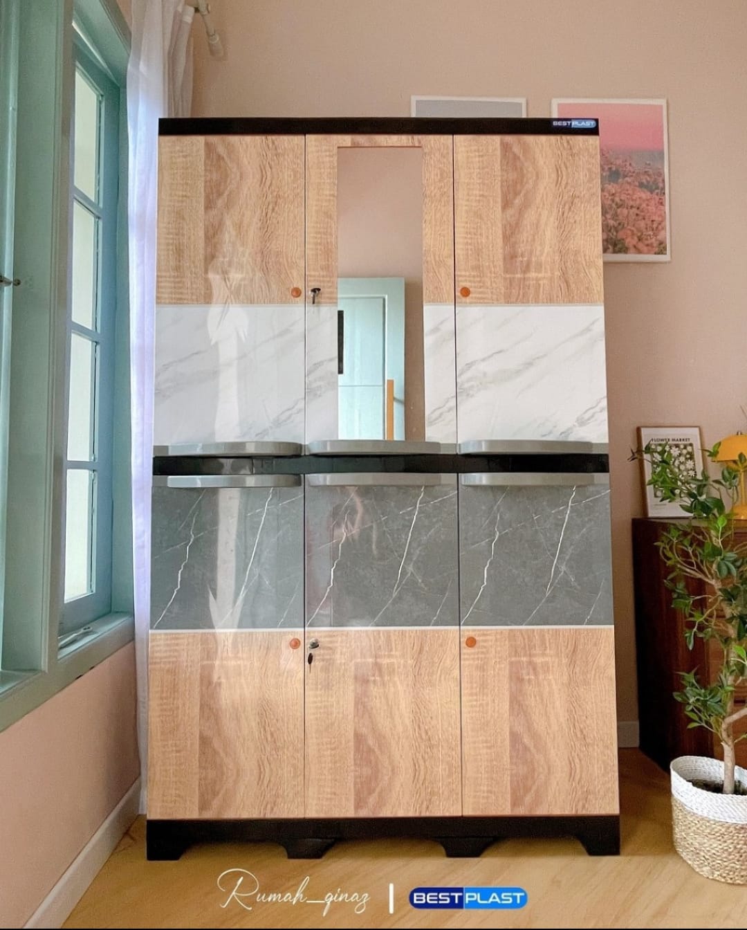 Lemari Plastik 3 Pintu Kaca Bestplast / Lemari Baju / Lemari Pakaian - Gantung & Full Rak