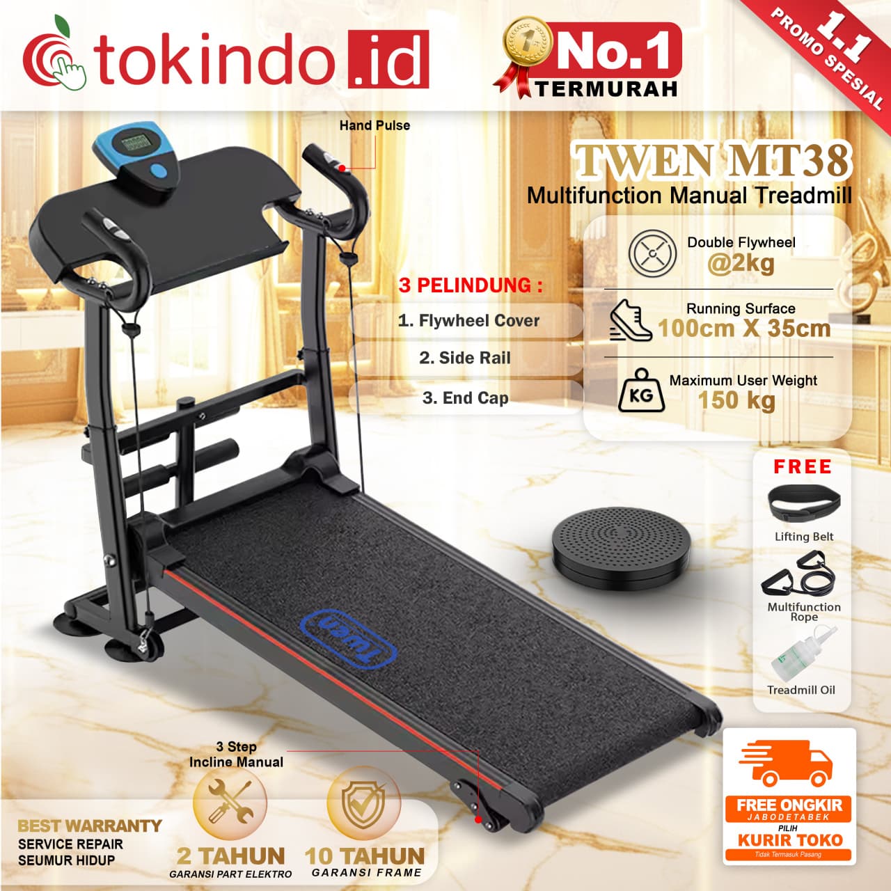 TWEN MT31 MT38 Treadmill Tanpa Listrik Treadmill Manual Treadmill Multifungsi Treadmil Lipat Alat Olahraga