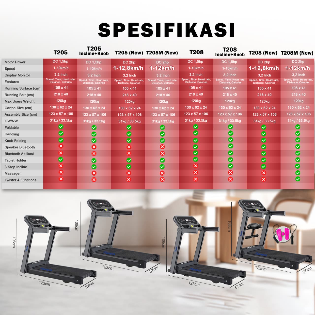 TWEN T205 New T208 New T205M New T208M New Treadmill Listrik Treadmill Portable Treadmill Multifungsi Treadmil Lipat