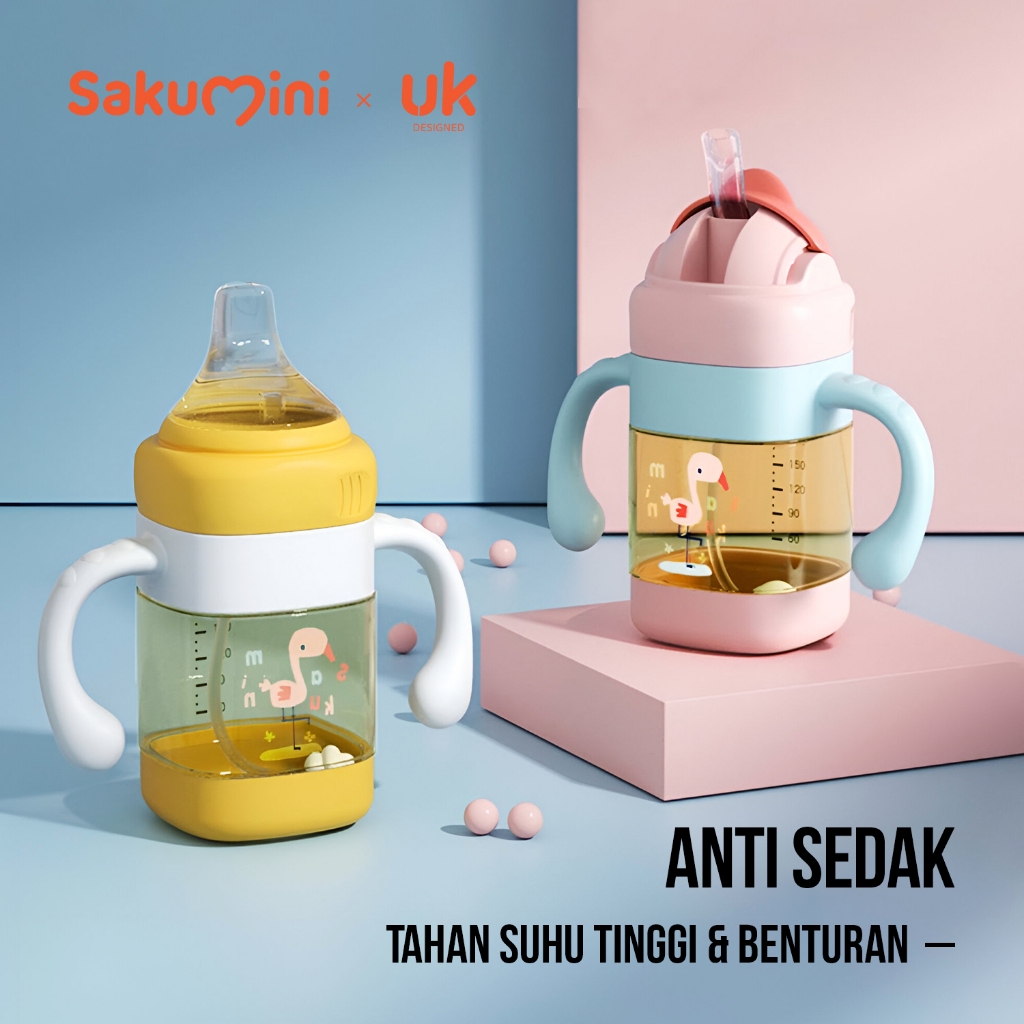 Botol Minum Sedotan Training Baby 240ml PPSU Straw Cup Sakumini Set Baju Bayi