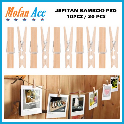 NATURAL BAMBOO PEG / WOODEN CLIP POLOS KLIP FOTO JEPITAN JEMURAN DEKORASI KAMAR SERBAGUNA