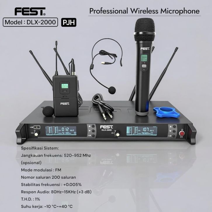 Mic Wireless Fest DLX 2000 Original Product Pegang - Headset - Clip on