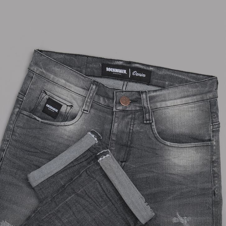 celana jeans cowok panjang denim selvedge accent rockmaker smurf grey