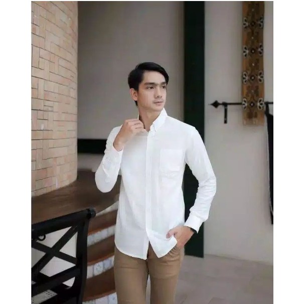 Kemeja Cowok polos lengan panjang slimfit hem pria kantor hitam putih maron