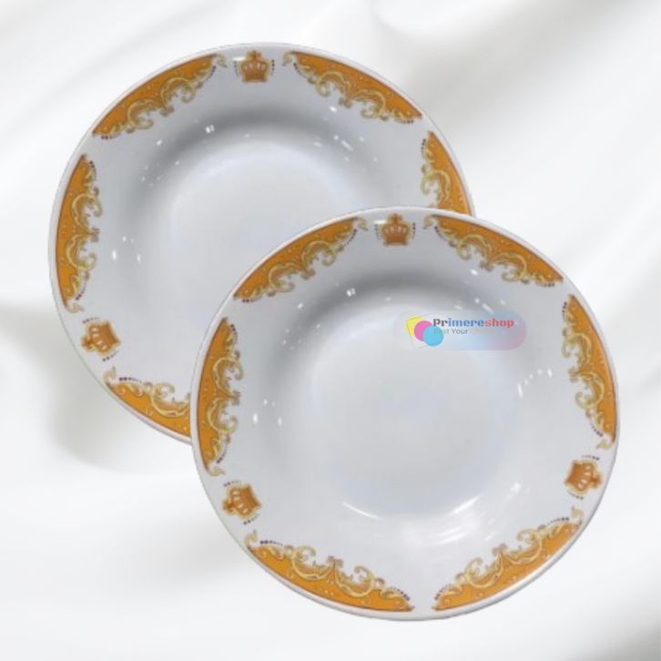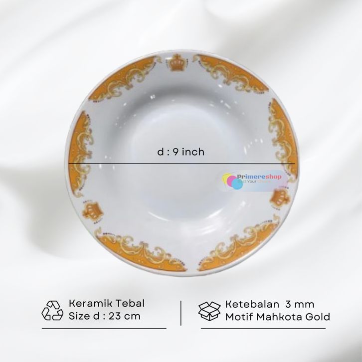 PIRING MAKAN KERAMIK BELING 12PCS 1 LUSIN MOTIF MAHKOTA TEBAL 3 MM UKURAN 23 CM MICROWAVE SAFE ANTI PECAH