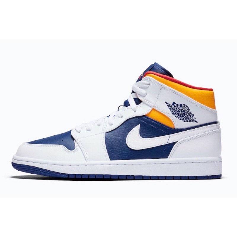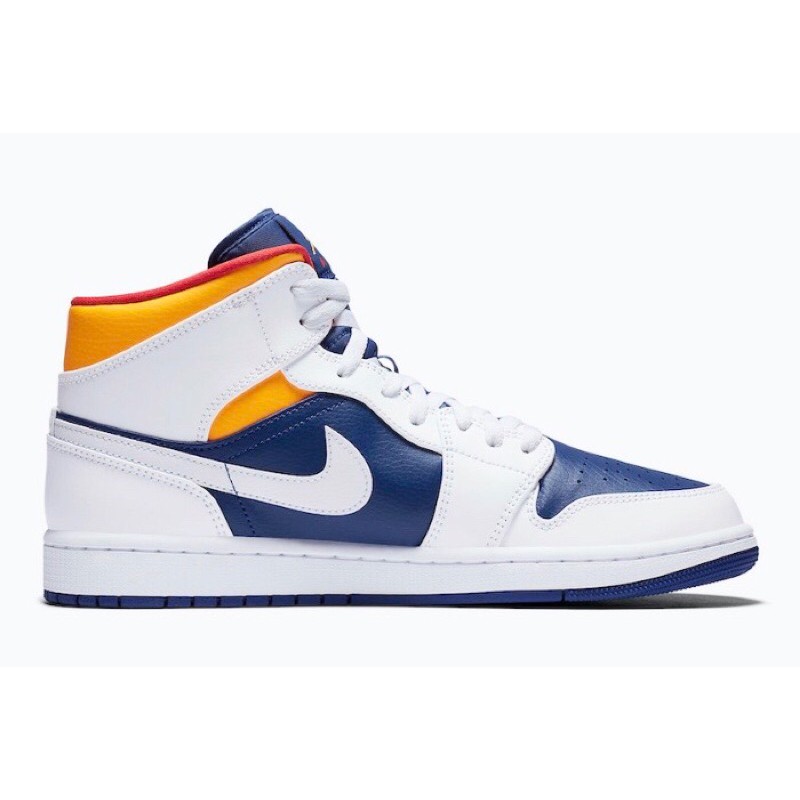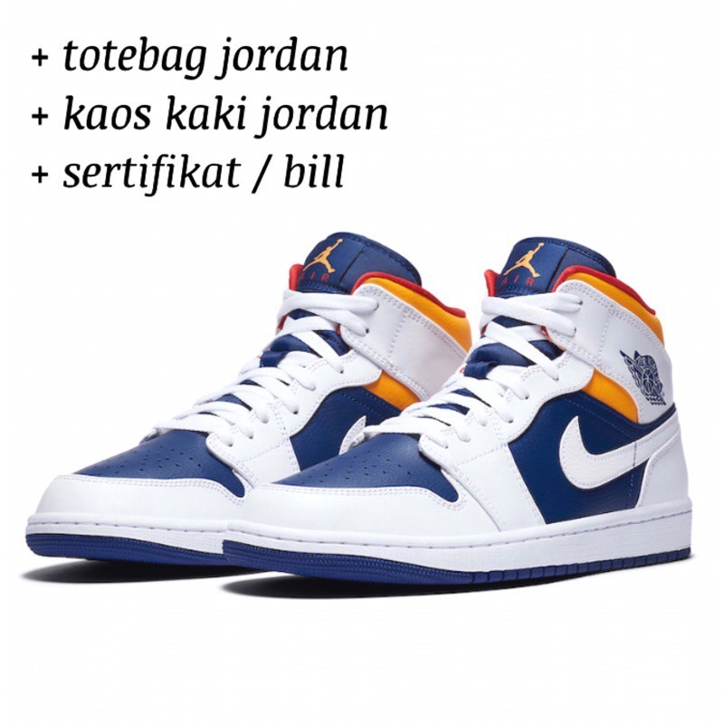 sepatu nike pria Air Jordan Aj 1 Mid White Deep Royal Blue Laser Orange Purple Yellow