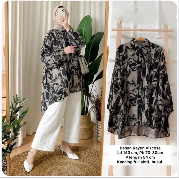 PROMO DISKON OVERSIZE BLOUSE MOTIF - ATASAN RAYON FULL KANCING JUMBO / KEMEJA RAYON MOTIF KEKINIAN 2022