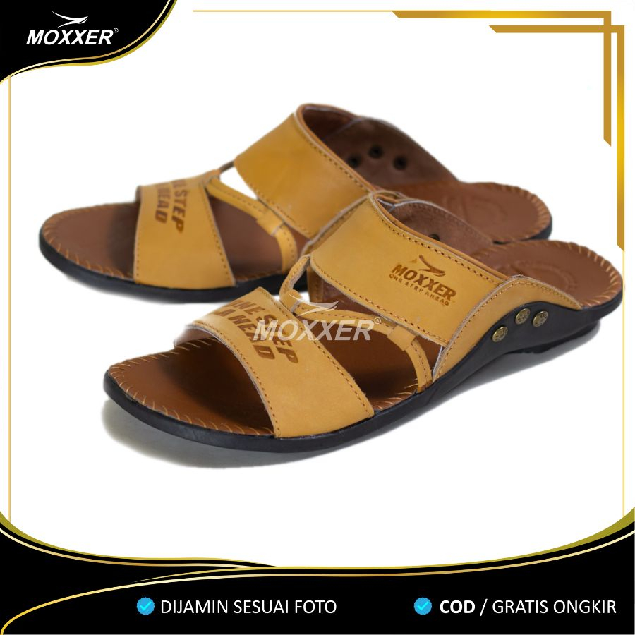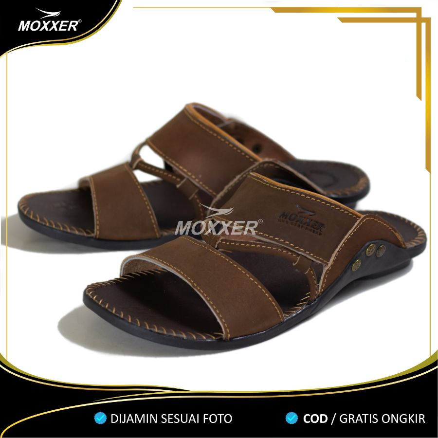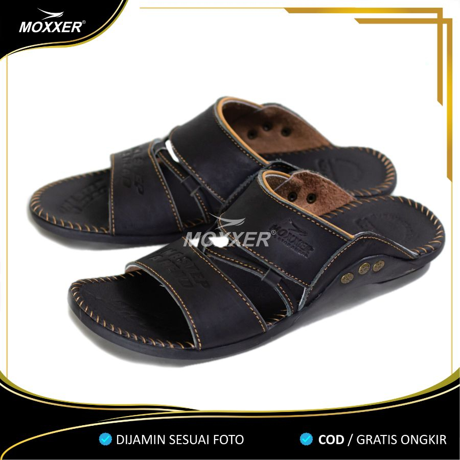 Sandal Kulit Asli MOXXER Full Up Sendal Kulit Asli Pria Sandal Slop Casual / Sendal Jepit Cowok Slide MOXXER Kulit Gosok