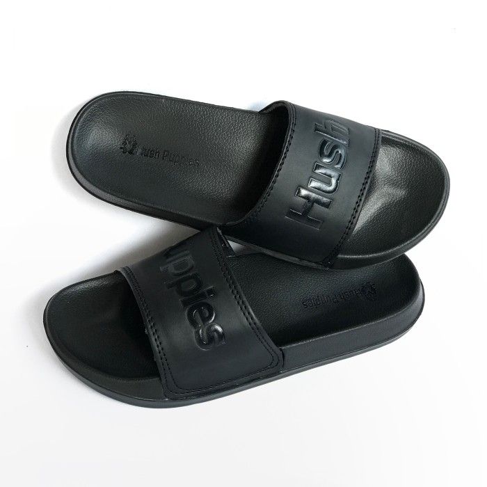 Sandal Hush Puppies Pria Terbaru Full Black Big Text Like Original - Navy Gold Text 0