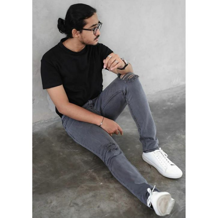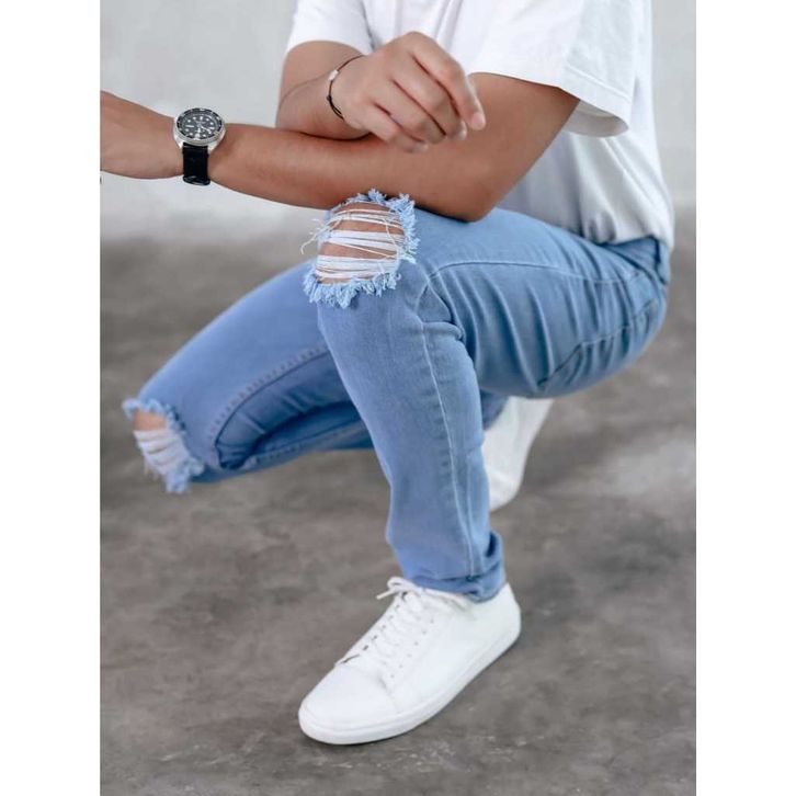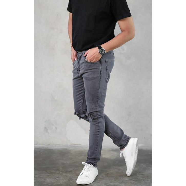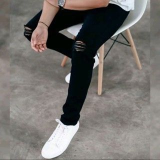 Celana Jeans Panjang Pria Sobek Lutut Slimfit Hitam Ripped Soft Denim Stretch Skinny Size 27-38