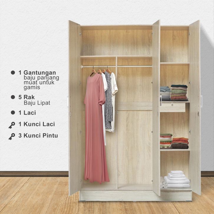 Idea Furniture Lemari Pakaian 3 Pintu Polos Modern Minimalis Murah - IDEA Wanaka WG