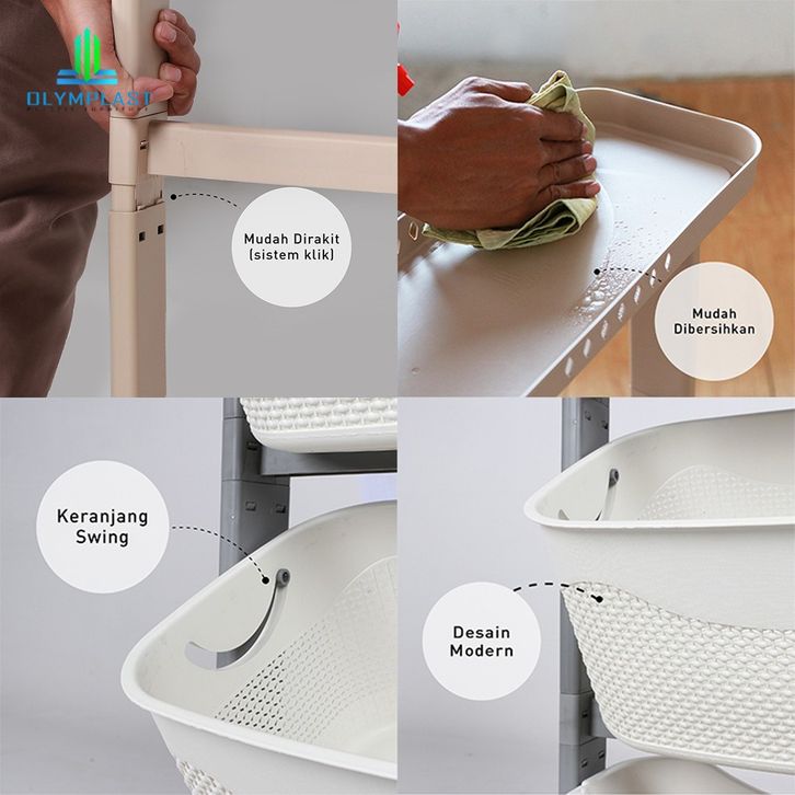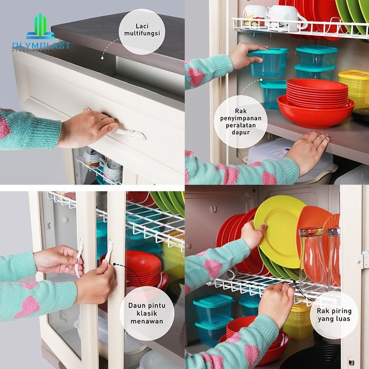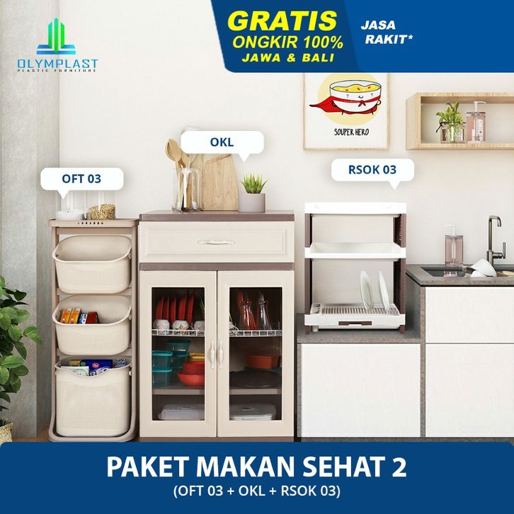 LEMARI Olymplast Makan Sehat 2 – Kabinet Dapur 1 Pcs + Rak Susun Dapur 1 Pcs + Rak Susun Serbaguna 1 Pcs