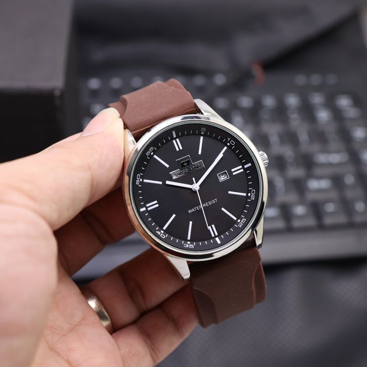 Jam Tangan Pria Swiss Army / Swiss Army Tanggal Aktif SA 1180 - Tali Rubber - Jam Tangan Murah