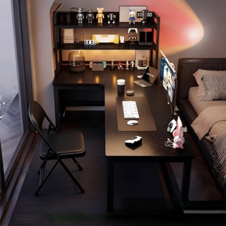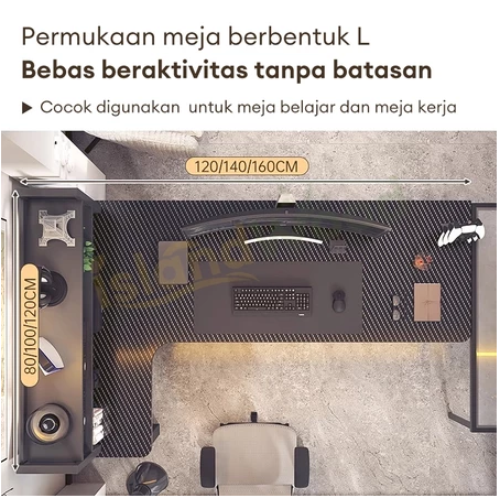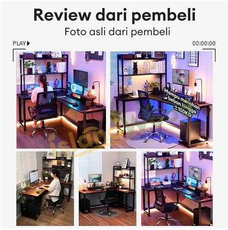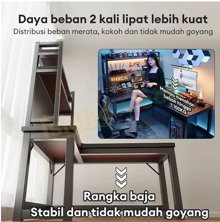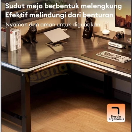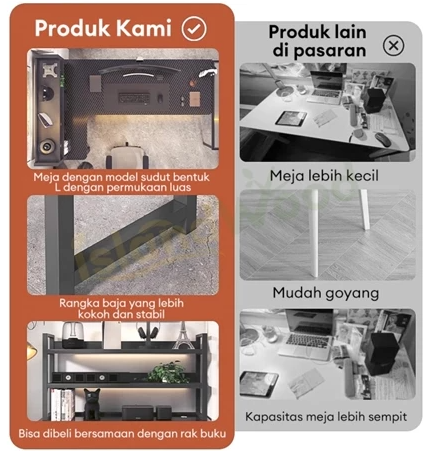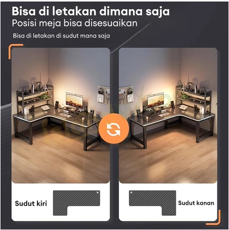 MEJA L KANTOR GAMING KOMPUTER MINIMALIS MODERN BELAJAR HITAM LAPTOP KERJA BAHAN LOGAM KAYU DILENGKAPI PENYIMPANAN